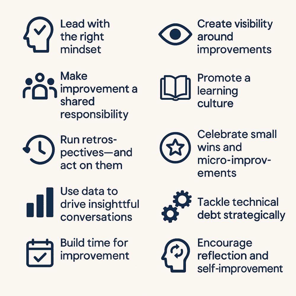 Culture begins at the top. If leaders don’t model continuous improvement, teams won’t embrace it either.