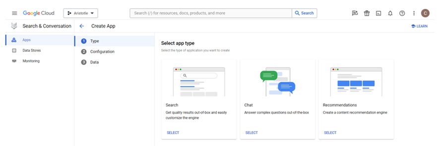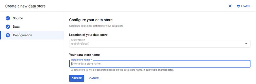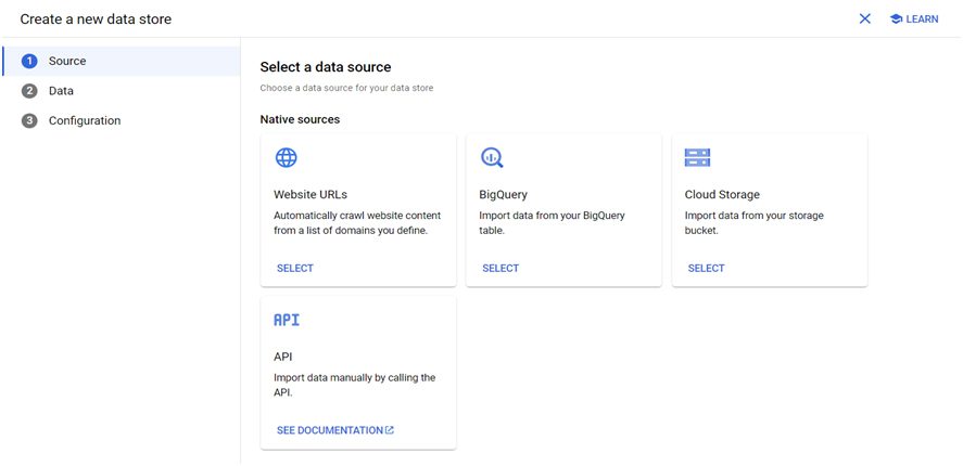 - 1. Define Data Source: Initiate this process by defining a data source in Vertex AI Search.